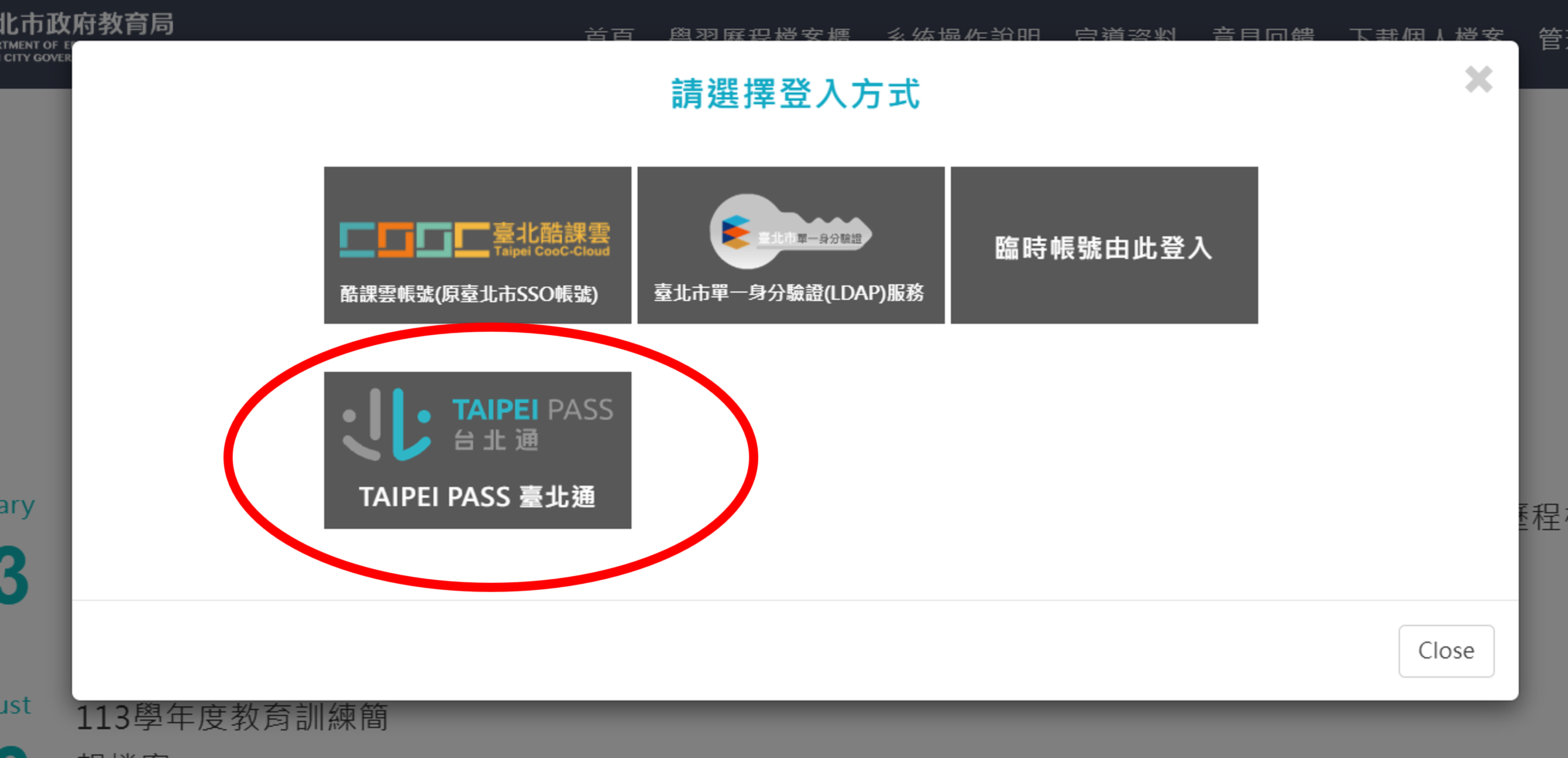 利用台北通帳號, 登入學習歷程檔案系統。