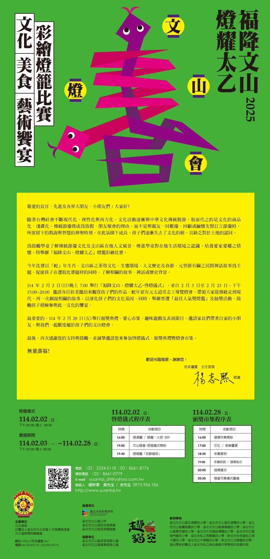 一、依據社團法人臺北市元太慈愛人文推廣協進會114年1月22 日元太會字第11401090023號函辦理。
