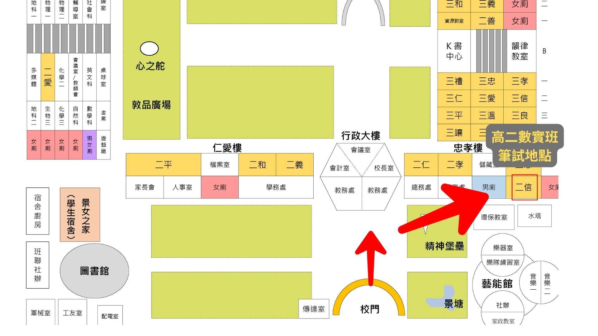 2.考試地點:景美女中二信教室(請見附件地圖)