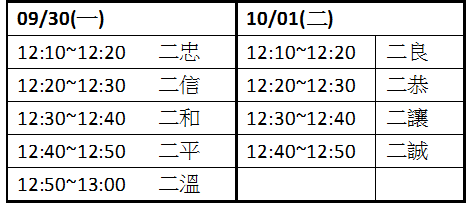 10/01(二) 12:10~13:00 @行政大樓二樓會議室