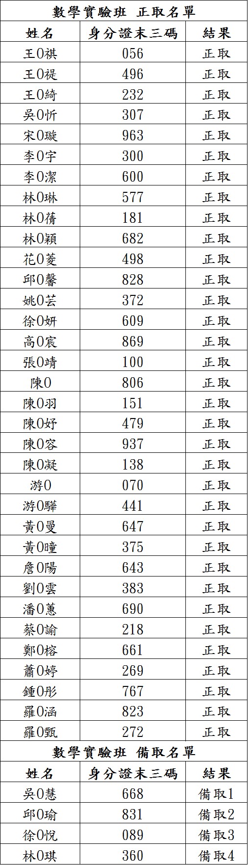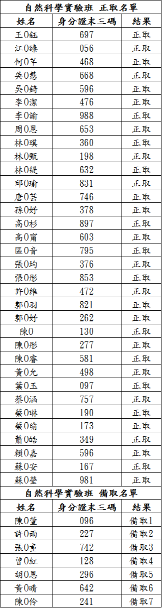 經錄取欲放棄者,請於17:00前填寫放棄入班同意書,掃描後email至教務處實驗研究組 Lsn44new@cmgsh.tp.edu.tw,並請務必來電確認(02)29368847 #306。