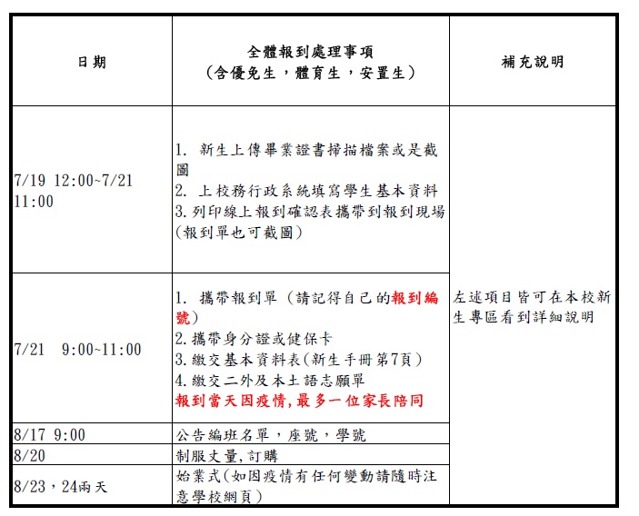 4.上傳資料只須在校務行政系統內填寫上傳,上傳資料如畢業證書,戶口名簿不必帶到學校。報到當天只須攜帶『學生本人證件』及『報到單』。