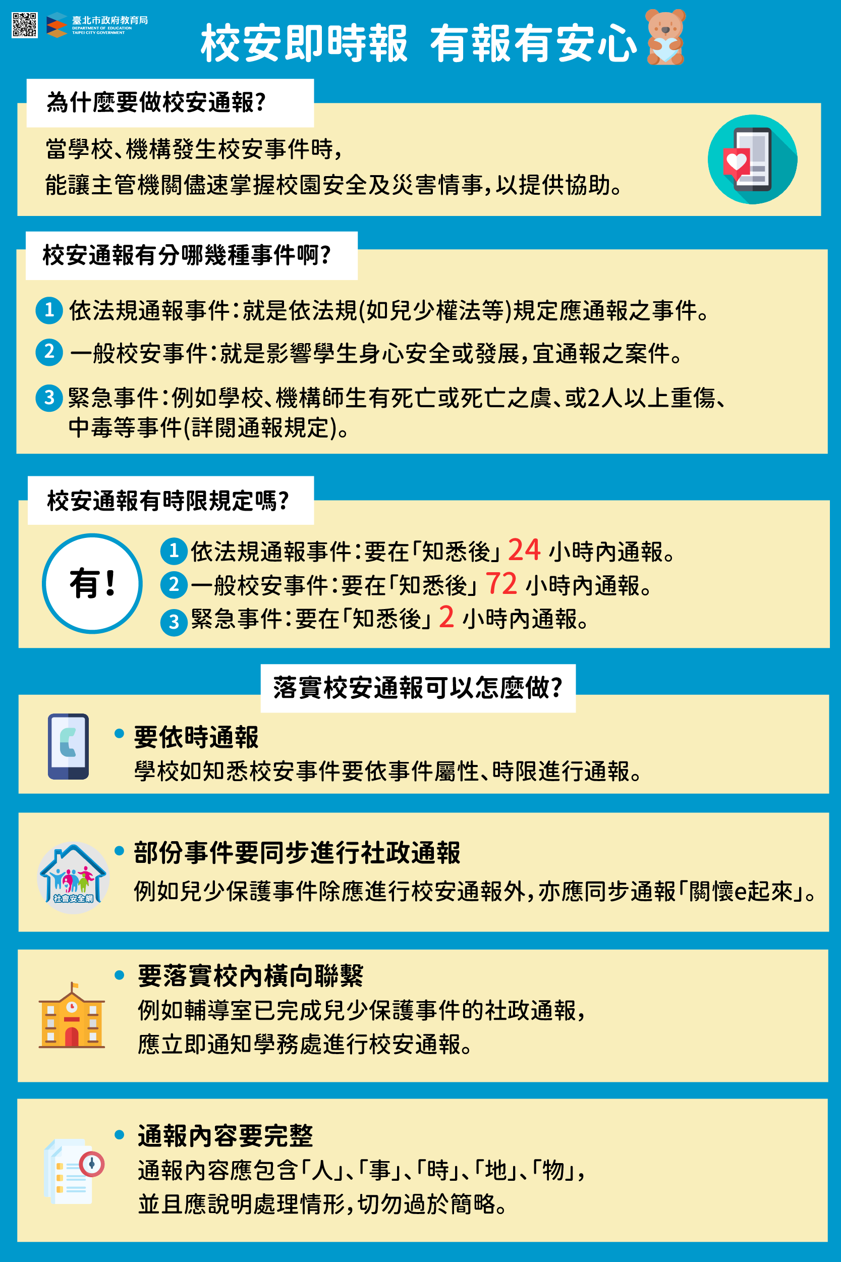 一、教育局來文,校園安全及災害事件通報作業要點向所屬教職員工進行宣導,以精進校安通報作為。