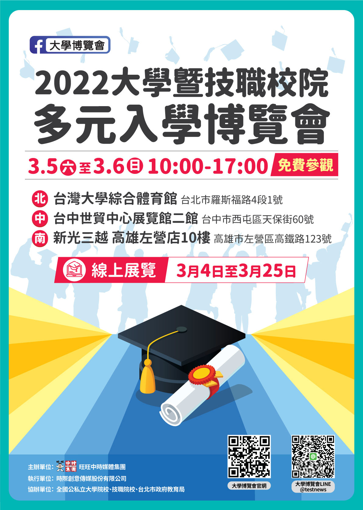 一、活動實體展覽訂於111年3月5日至6日假國立臺灣大學綜合體育館1樓舉行;線上展覽訂於111年3月4日至3月25日,請轉知教師、學生及家長參考。