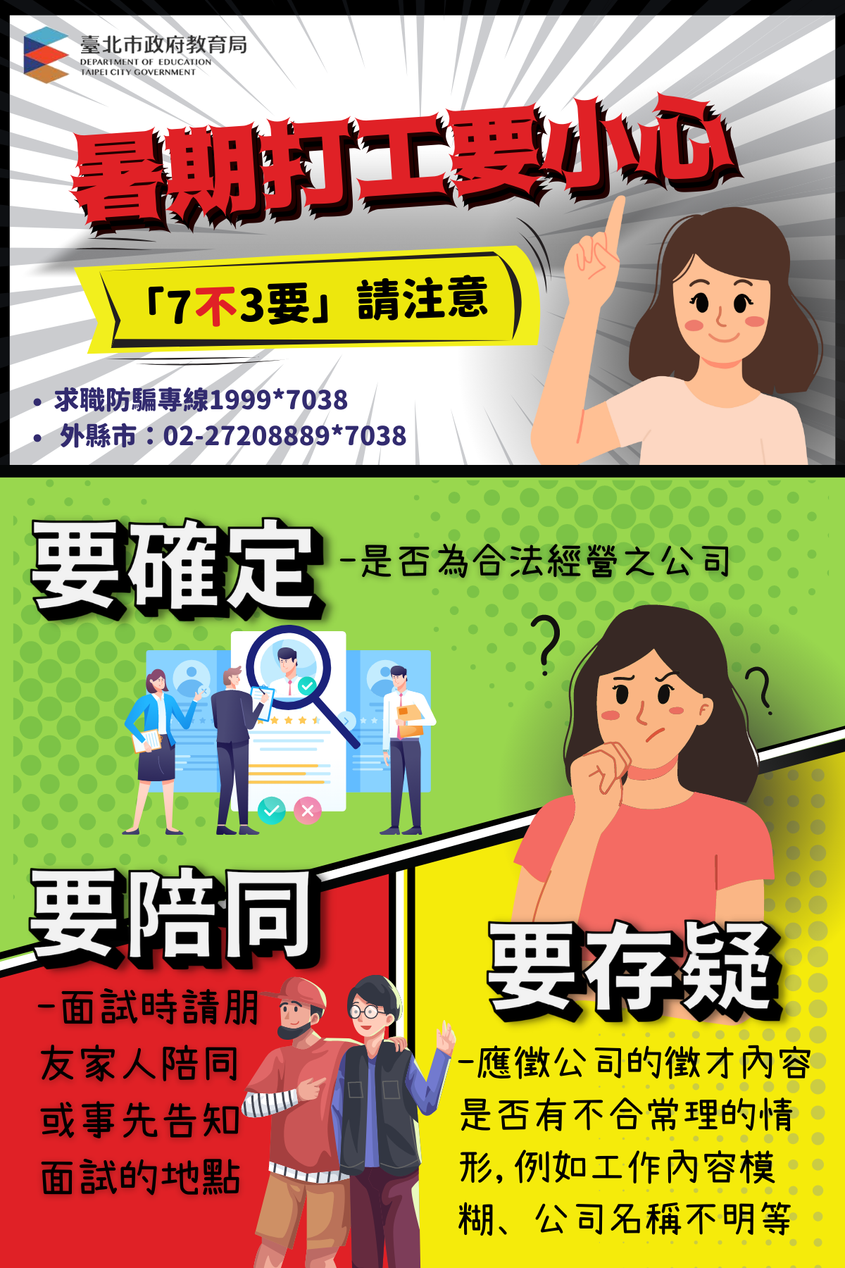 (一)針對暑期打工應遵循「3要7不」原則,本局暑期打工應注意事項