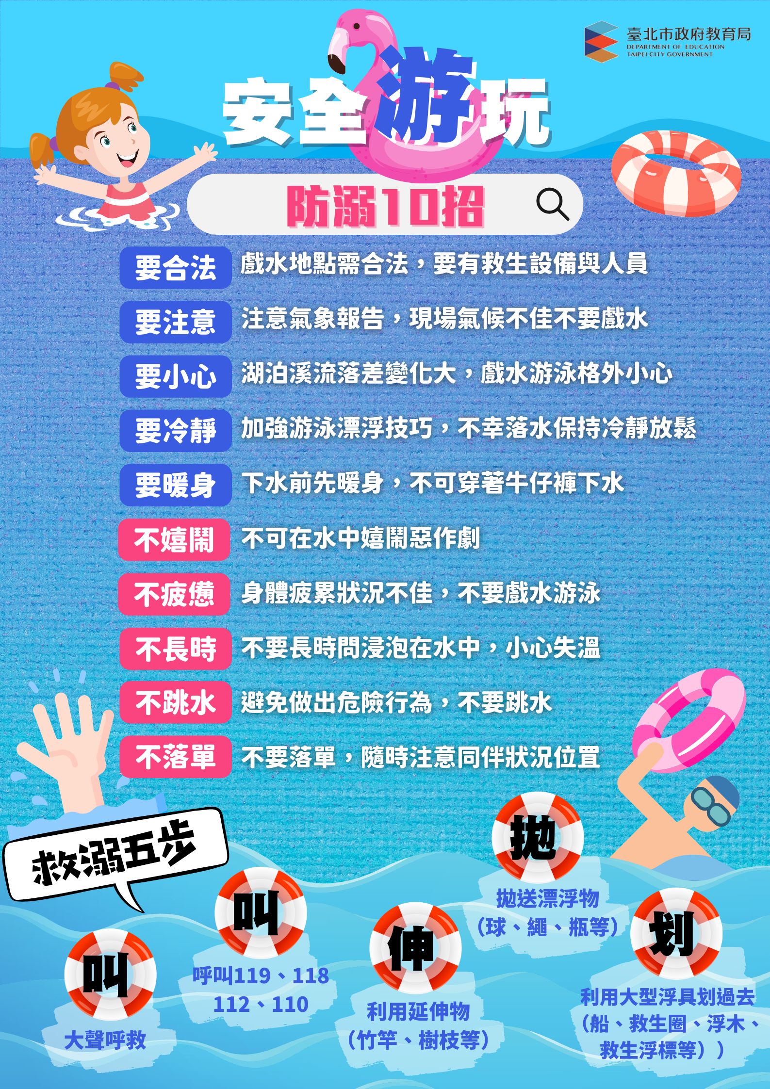 (二)熟記防溺 10 招,做好事前風險預防,救溺5步─叫叫伸拋划、救溺先自保