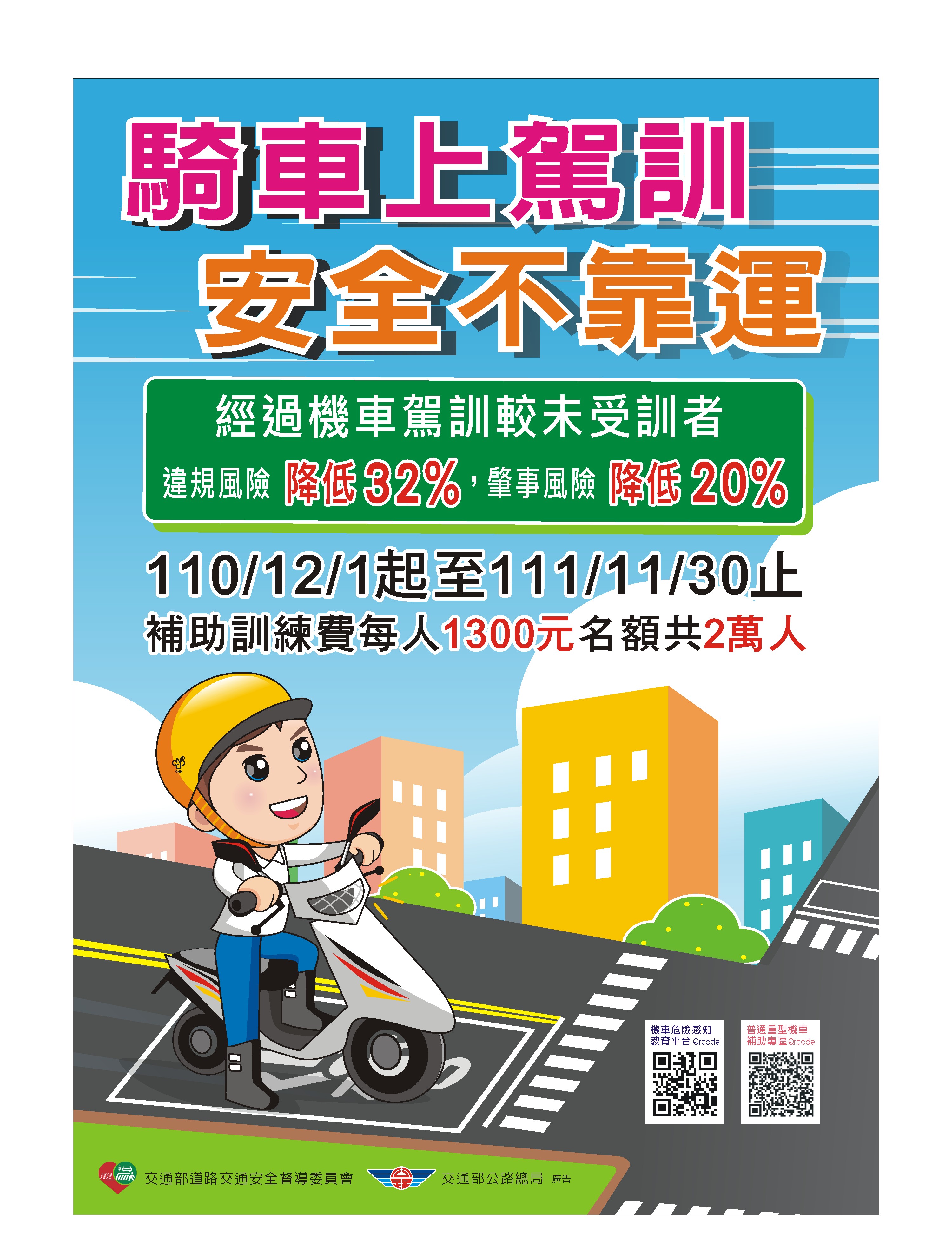 二、為強化學生機車安全駕駛觀念,降低交通意外之風險,相關訊息可至交通部公路總局「機車駕訓補助專區(https://www.thb.gov.tw/page?node=dd9aaea9-1ec2-4416-9b0d660de09bfb65)」網頁查詢。