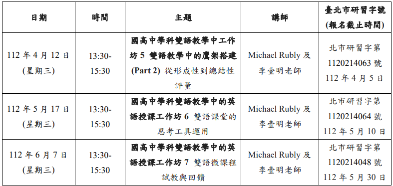 臺北市立中正高中辦理國高中教師雙語授課技巧系列研習