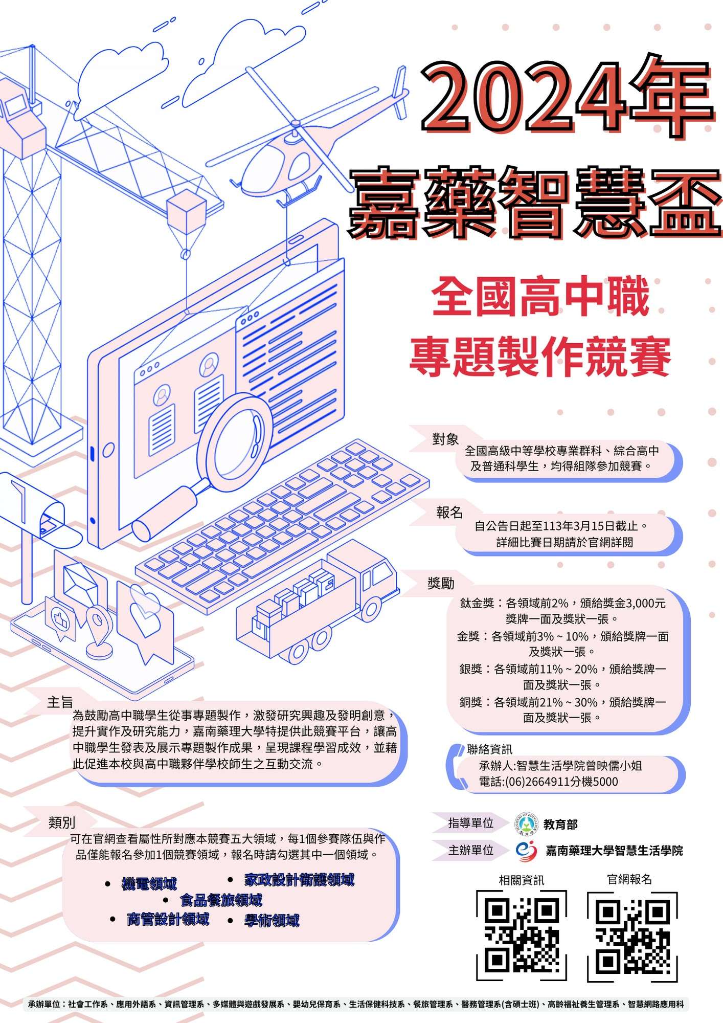 一、為鼓勵高中職學生積極參與專題製作,激發研究興趣及發 明創意,提升實作及研究能力,爰提供該發表及展示專題 製作成果競賽平台,並展現課程學習成效。