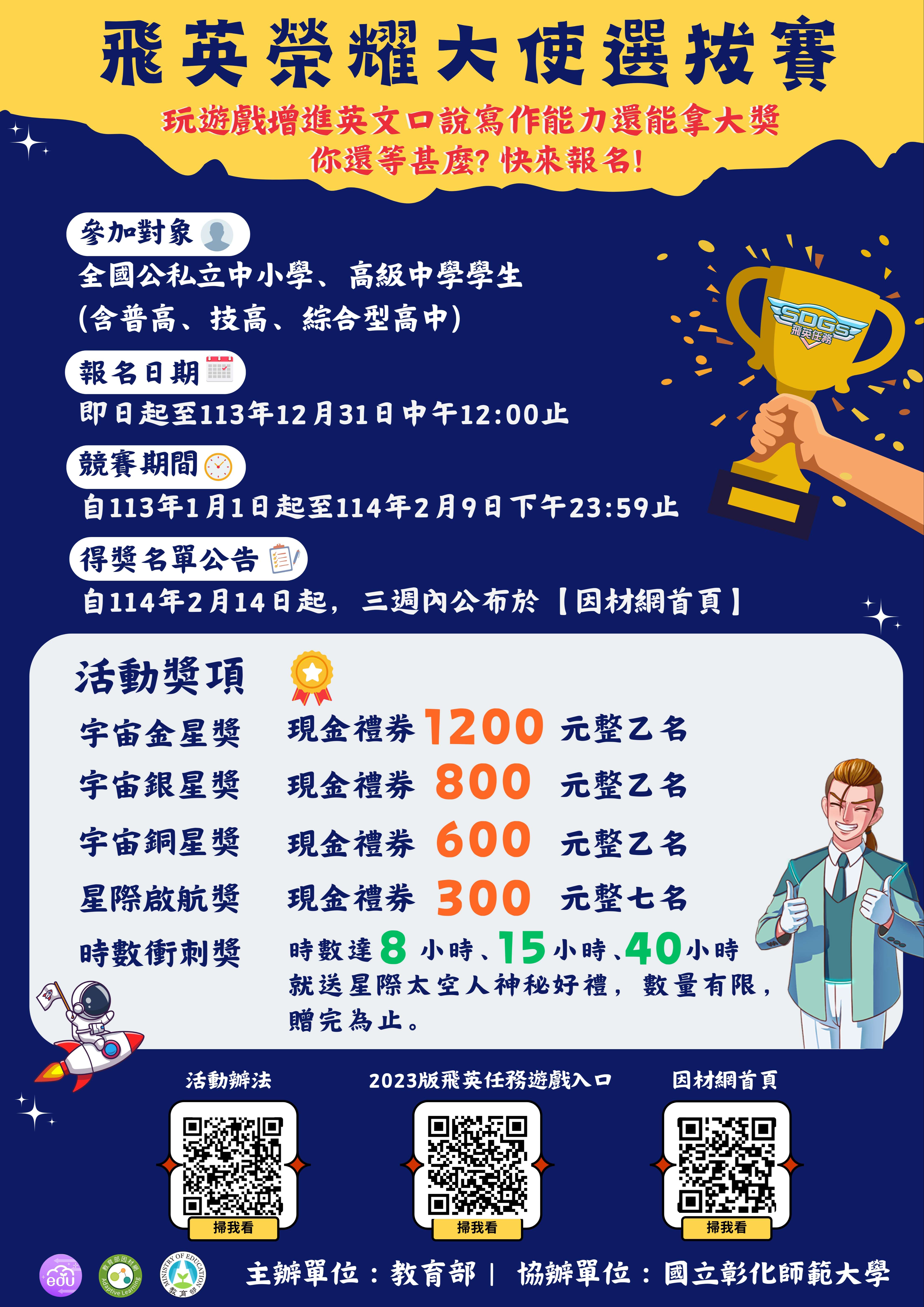 國立彰化師範大學辦理「SDGs 飛英大使年度排行榜積分賽」,請同學踴躍報名參加