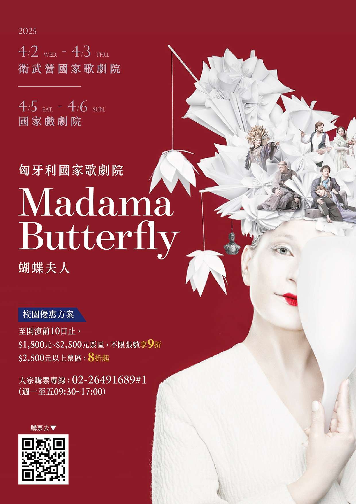 一、齊名世界頂尖劇院「匈牙利國家歌劇院」將於2025年4月攜 旗下歌劇、芭蕾舞團,帶來經典歌劇《蝴蝶夫人》與芭蕾 舞劇《天鵝湖》,分別於國家戲劇院及高雄衛武營國家歌 劇院登場,此次巡演將比照歐洲規模,動員超過百人製作 團隊,並挑戰一週同時於北高兩地演出兩部作品,為台灣 觀眾獻上歌劇與芭蕾藝術的最高水準。誠摯推薦各級學校 師生前來觀賞精彩演出,感受藝術魅力,並藉此機會增進 對歌劇和芭蕾舞的了解。相信這將會是非常難得的學習和 文化體驗。