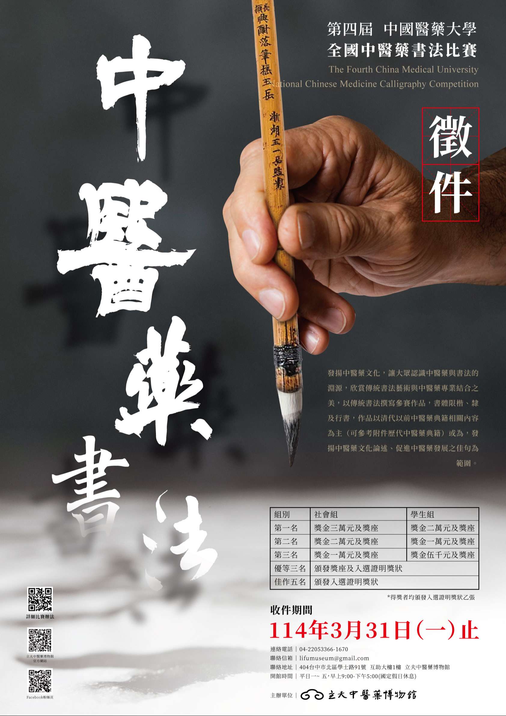一、比賽宗旨:為發揚中醫藥文化,讓大眾認識中醫藥與書法 的淵源,欣賞傳統書法藝術與中醫藥專業結合之美。(實施 辦法如附件一)