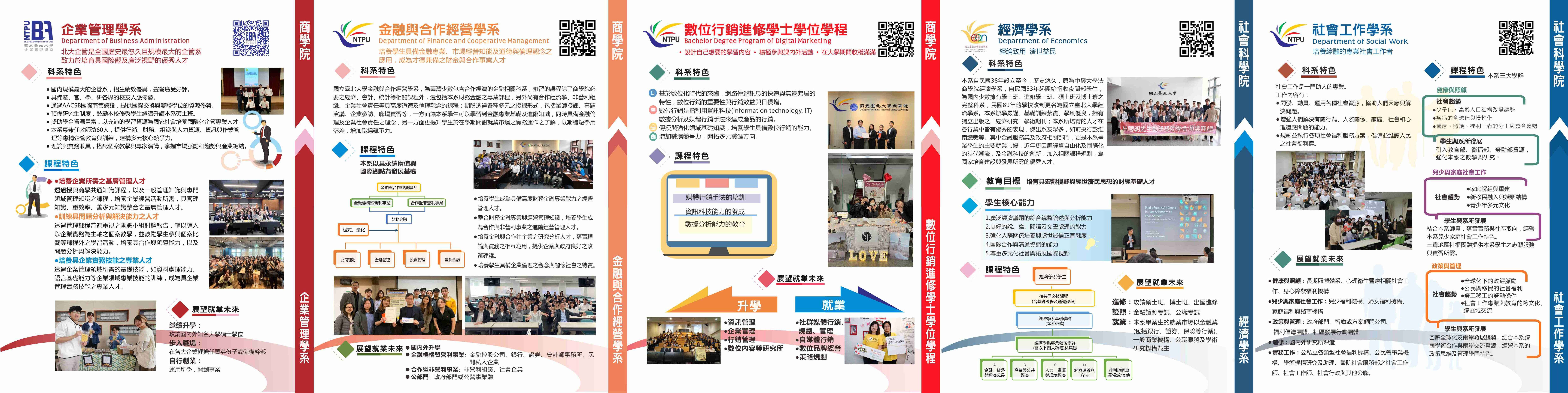 (三)商學院:企業管理學系、金融與合作經營學系、數位行銷進修學士學位學程。