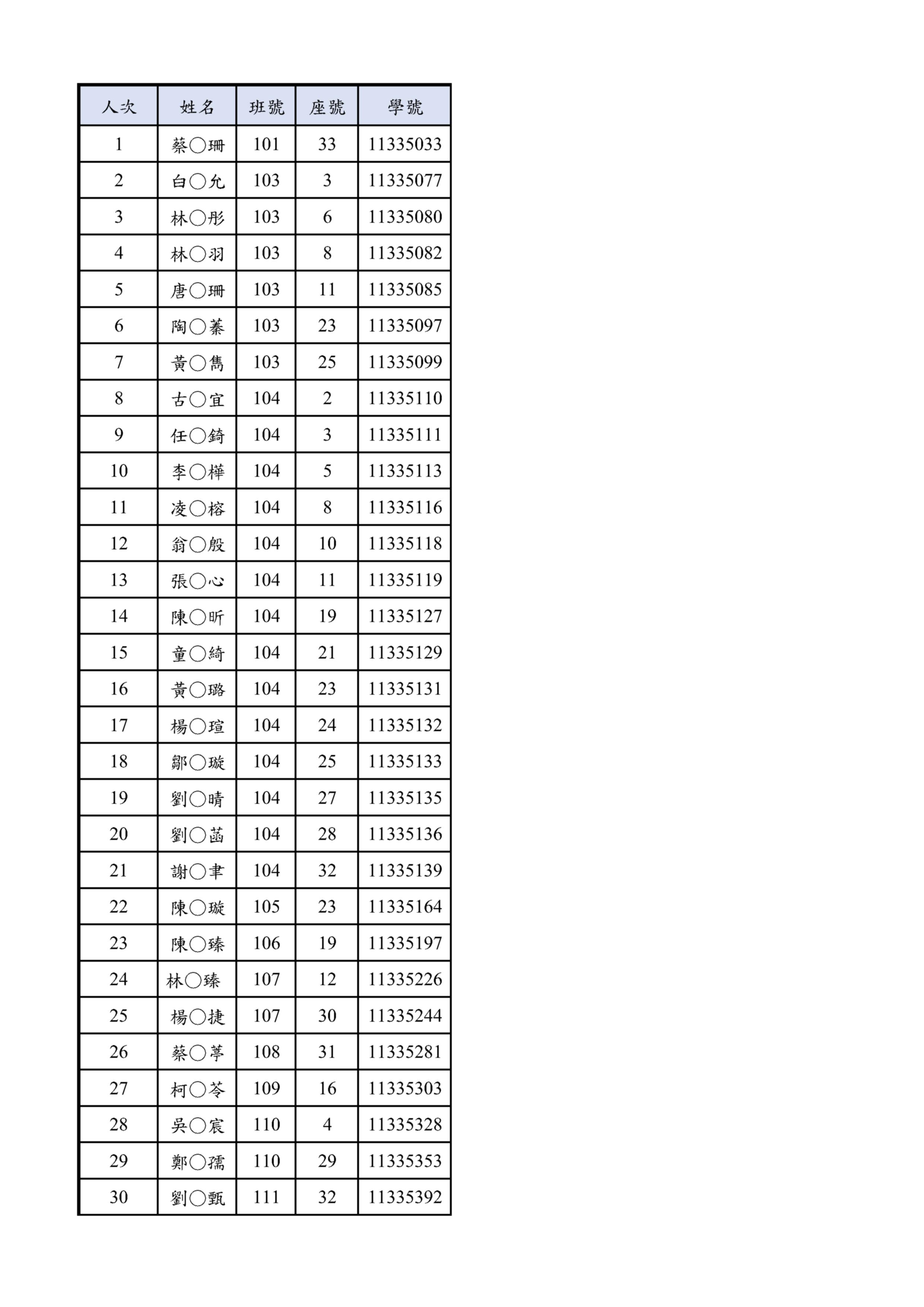請提早於11:05至各試場準備,11:10準時開始考試。