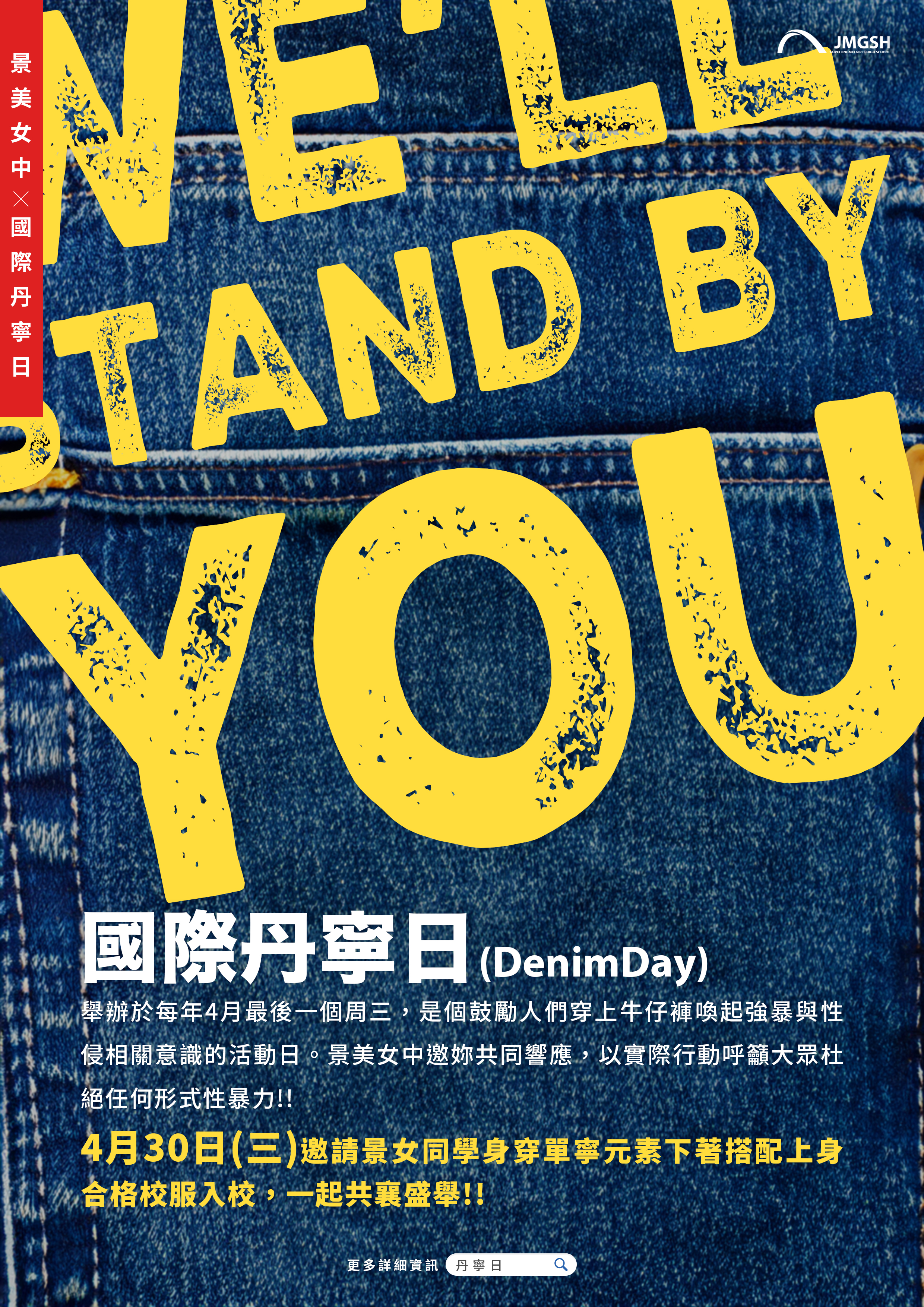 活動規劃:活動期間:2025年4月30日(每年四月最後一個週三為「國際丹寧日」,旨在呼籲民眾穿上丹寧服飾,表達支持被害者及終止性暴力的決心)