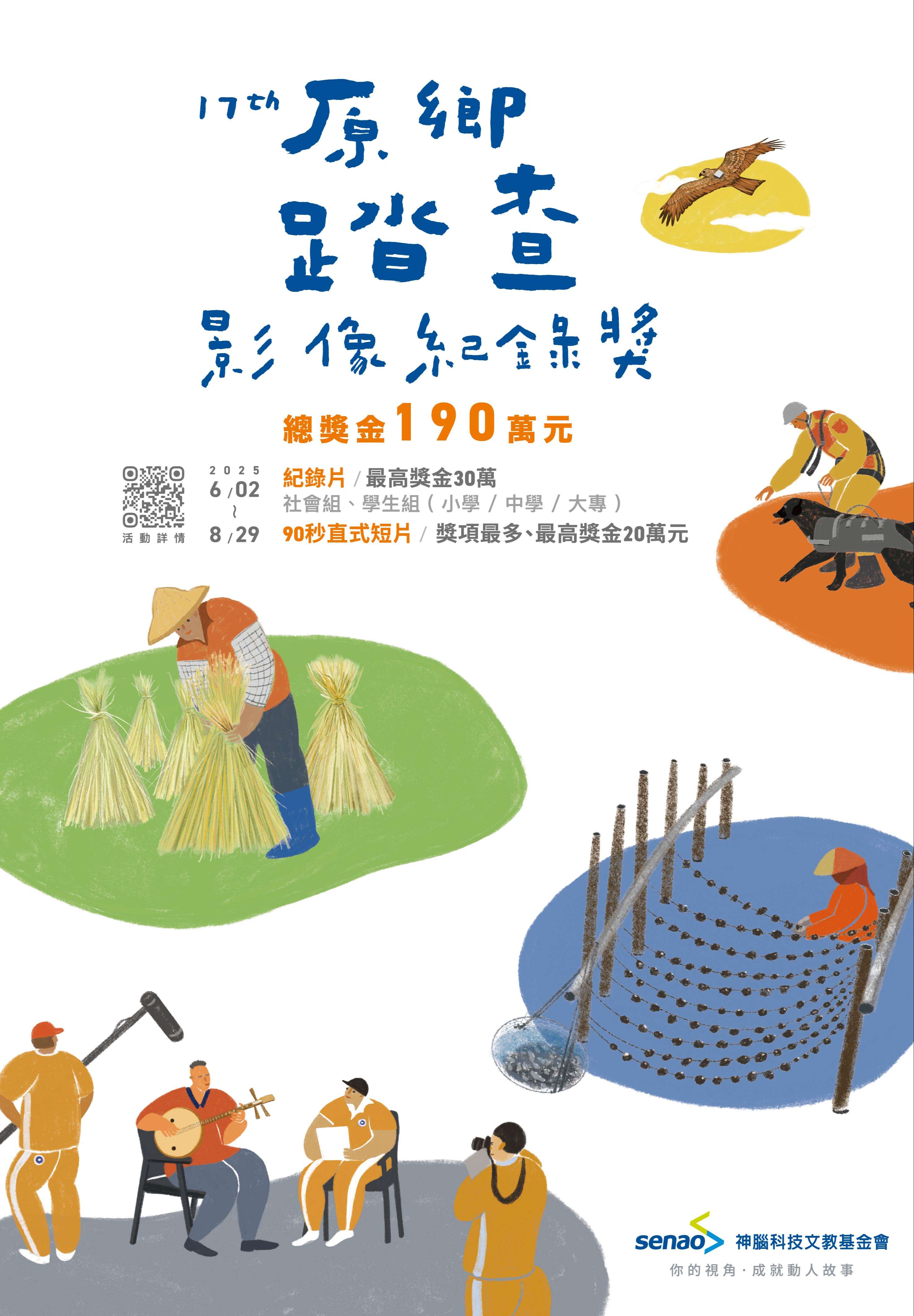 一、神腦科技文教基金會舉辦「第17屆原鄉踏查影像紀錄 獎」,旨在透過影像紀錄,鼓勵全民參與地方文化關懷與 人地情感連結,藉此培養觀察與敘事能力。