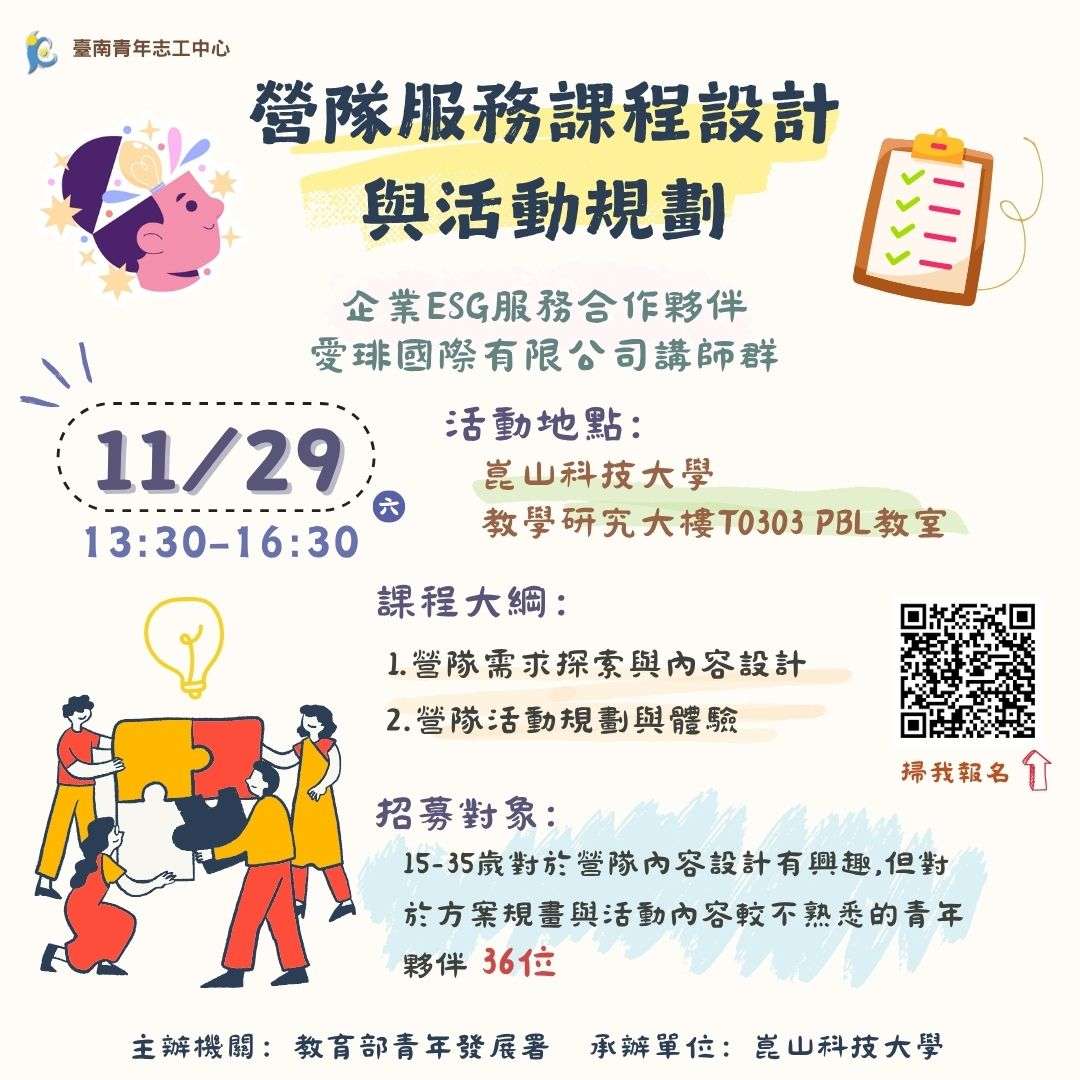 五、主辦機關:教育部青年發展署;承辦單位:青年發展署臺 南青年志工中心(崑山科技大學)。