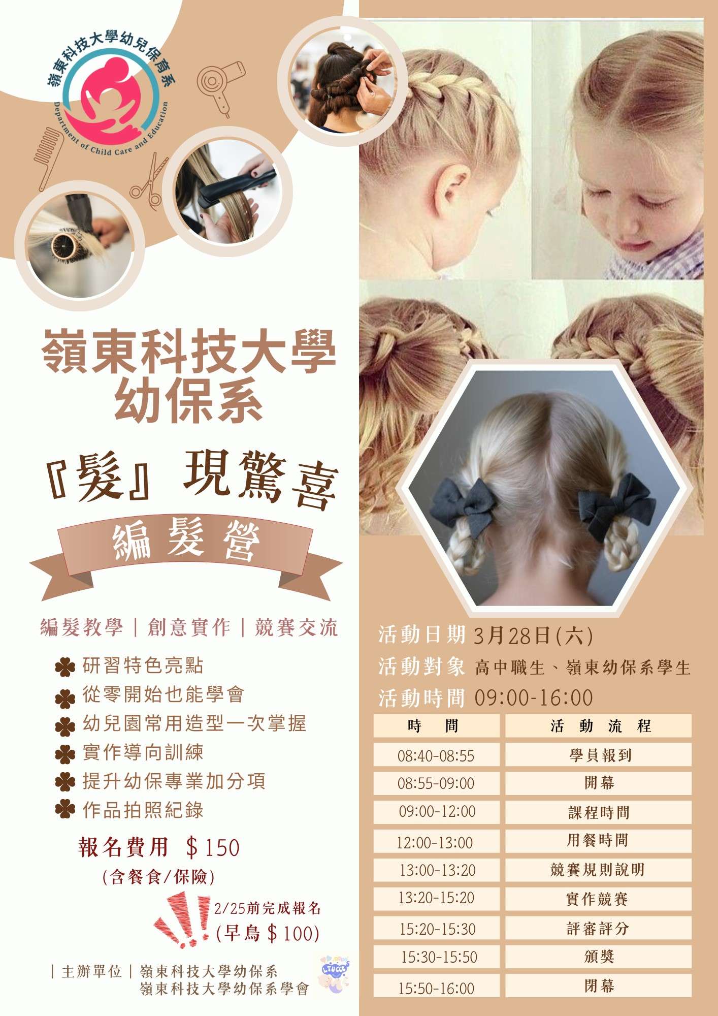二、本活動將於115年03月28日(星期六)上午9時至16時,假 本校幼兒保育系仙庭樓1樓HT106教室舉行。