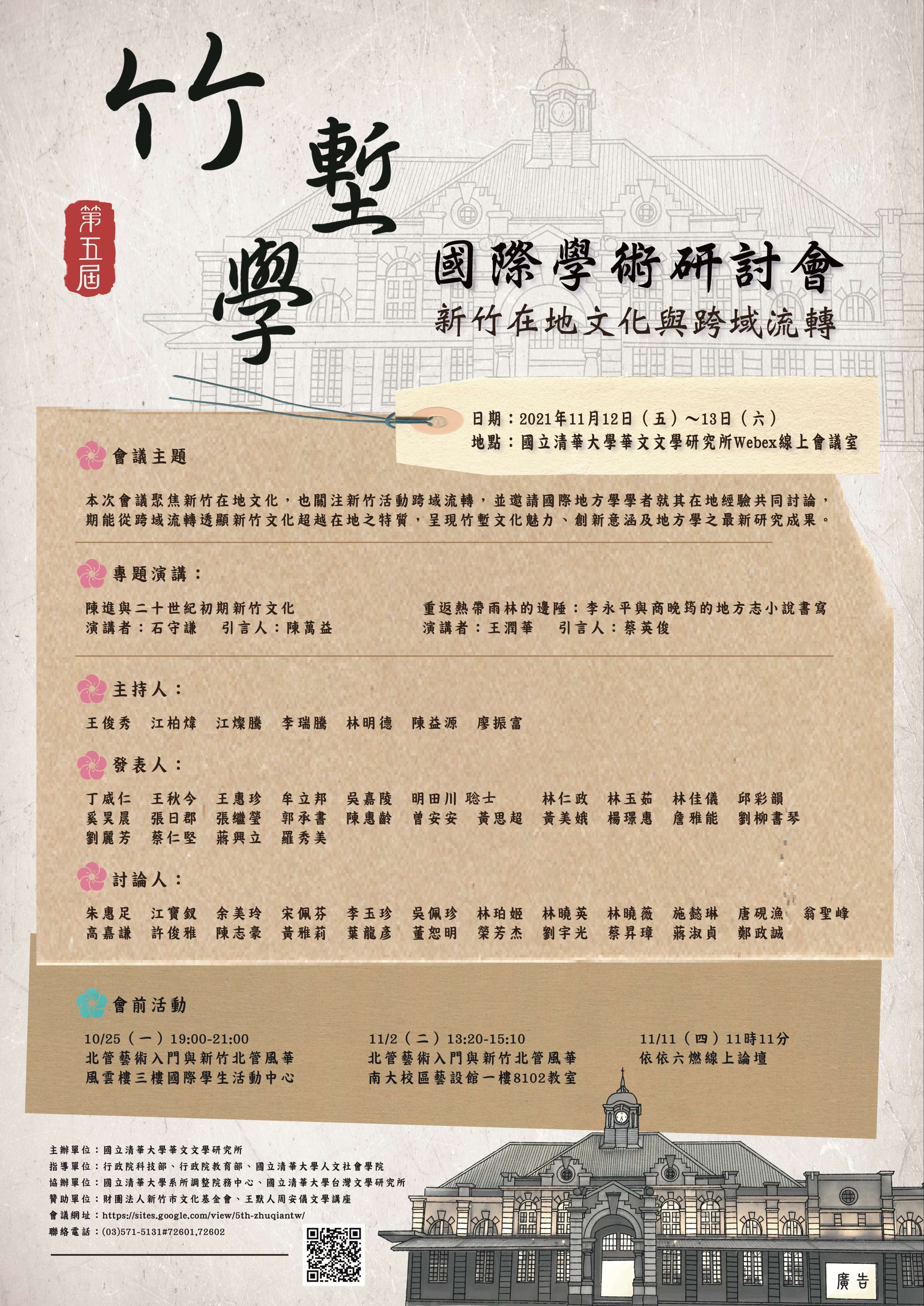 二、研討會相關訊息請參閱網址:https://sites.google.com/view/5th-zhuqiantw/