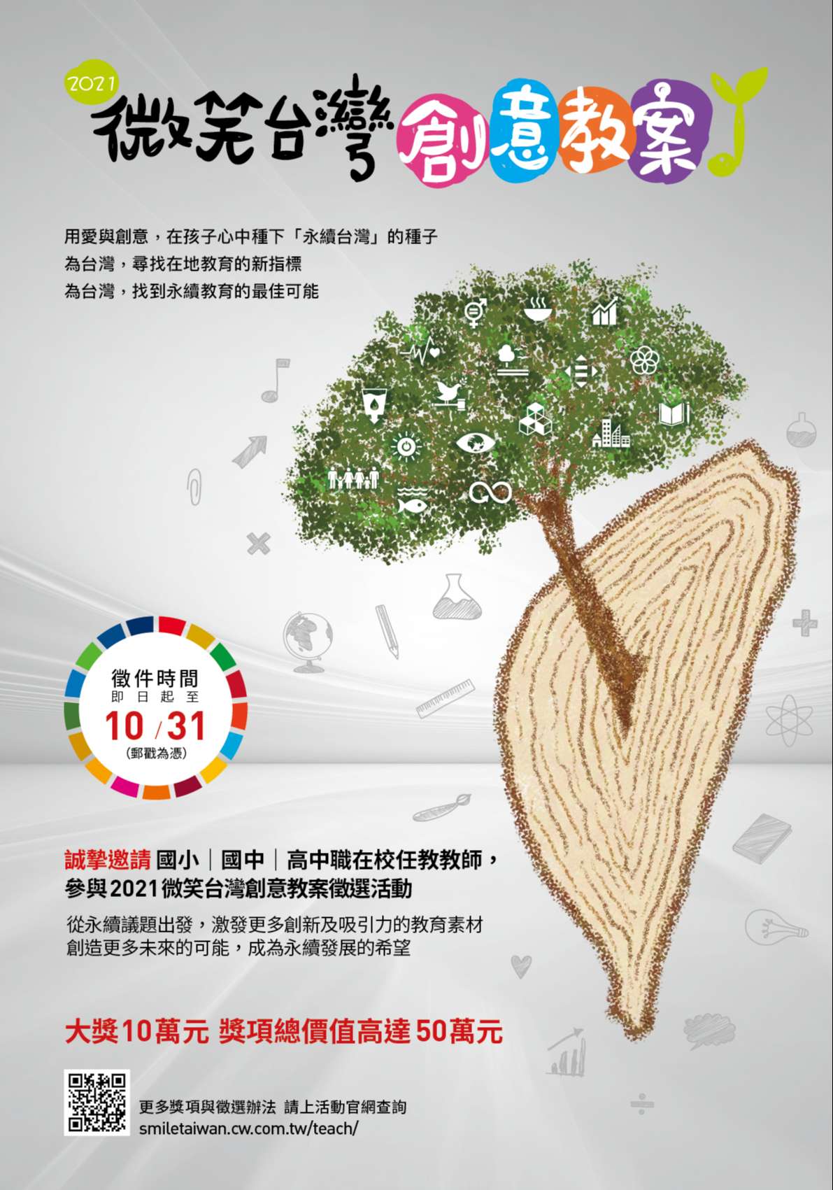 一、本活動海報圖檔、徵選辦法,惠請 各學校(館)協助宣傳,及刊登於校內網站。 二、詳細活動辦法及聯絡方式請見附件「微笑台灣‧創意教案」2021徵選活動辦法。