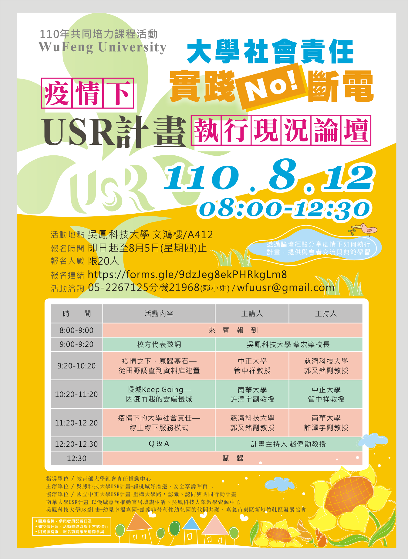二、活動時間與地點:110年8月12日(四)於吳鳳科技大學辦理。