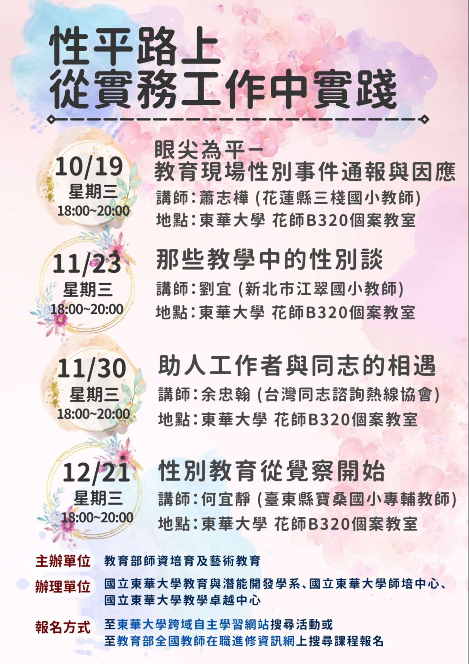 3、地點:東華大學 花師B320個案教室。