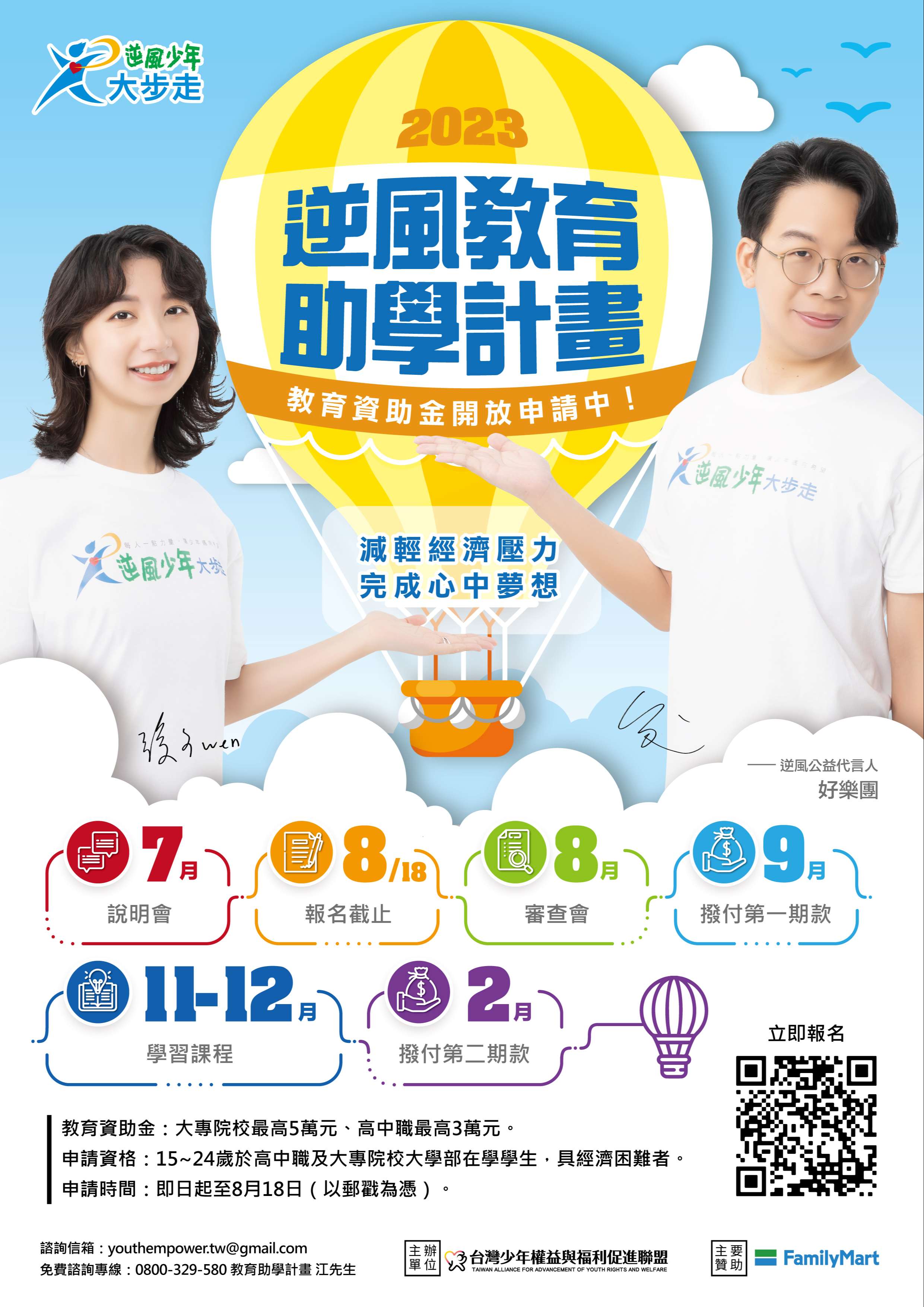 ►報名期間如有夢想計畫撰寫或申請資格問題,可參與【夢想實踐線上說明會】(7月23、30日下午14:00-15:00)。https://forms.gle/j467GHZVTiY8xzdS6