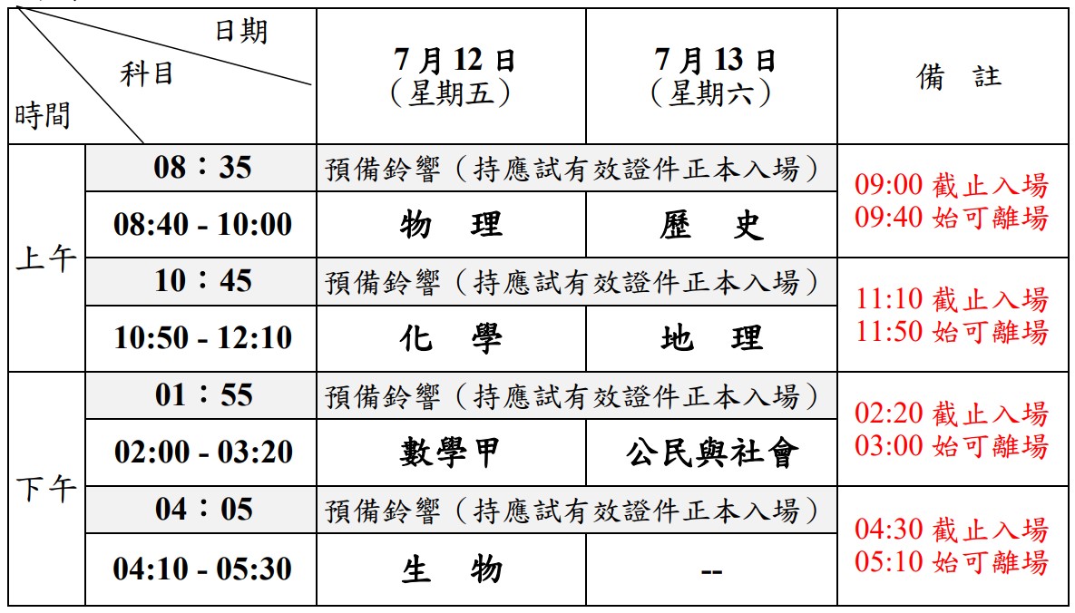 (一)試場公告:113年7月9日(星期二),大考中心網站(https://www.ceec.edu.tw/)開放查詢分科測驗試場分配。