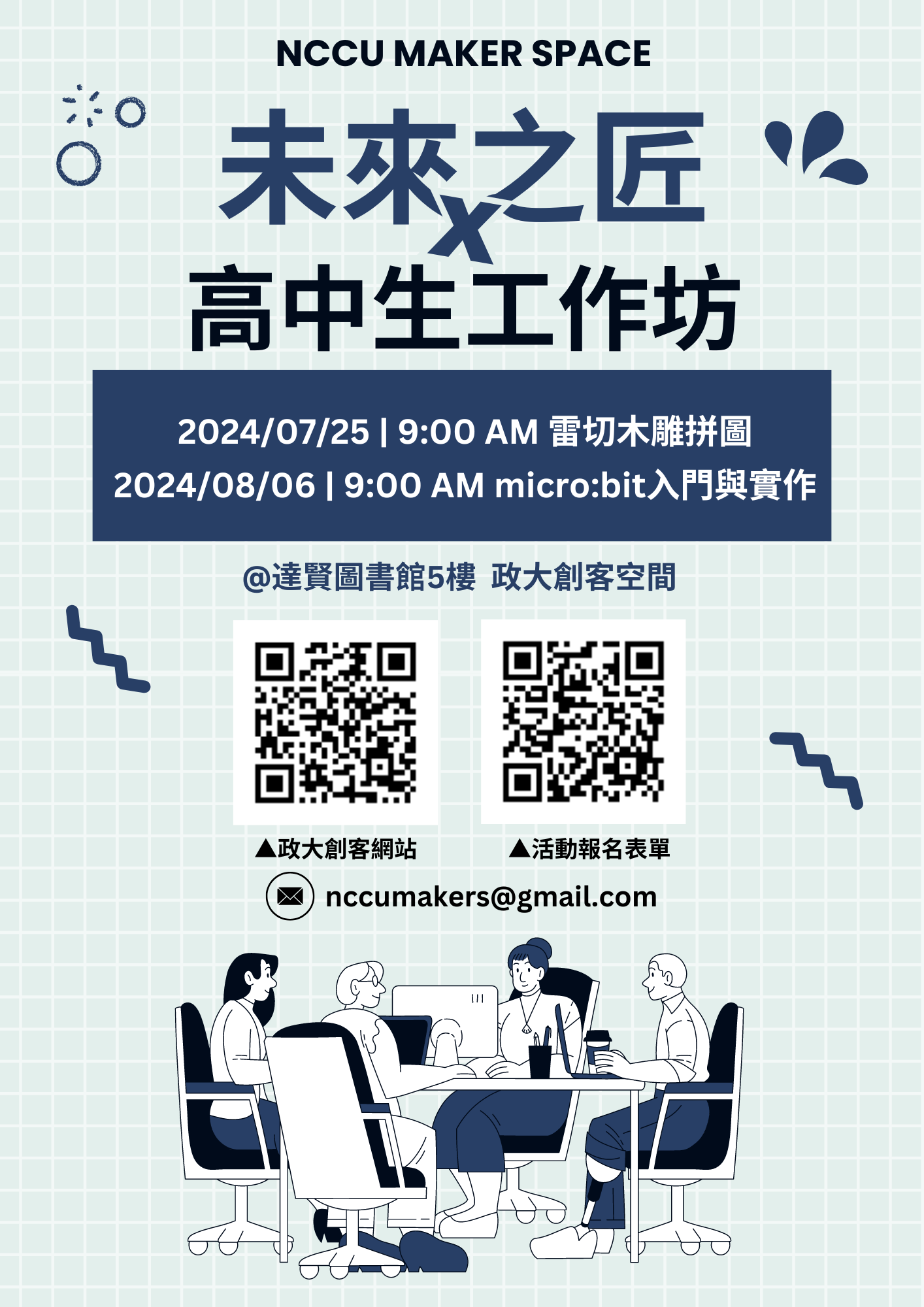三、檢附2024政大創客高中生工作坊「未來之匠」簡章及宣傳 海報各1份。