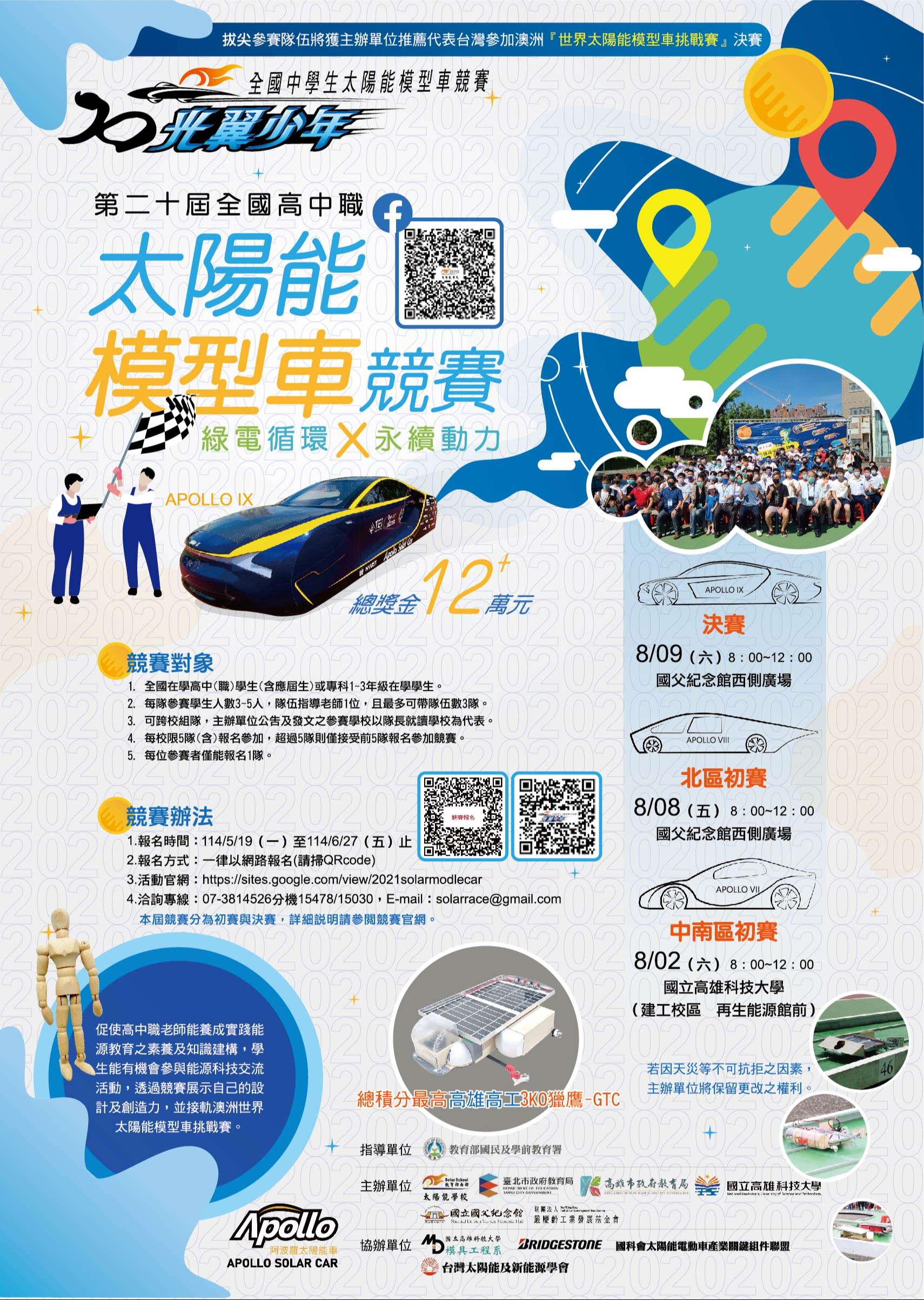 六、相關消息請洽南部太陽能學校陳昭銘專員,電話:07- 3814526分機15478;solarrace@gmail.com。