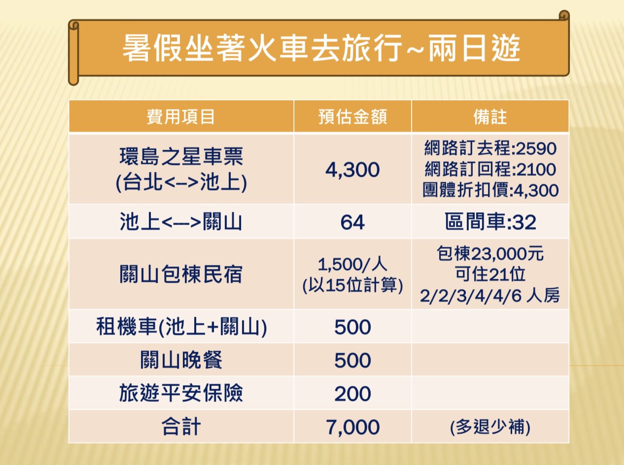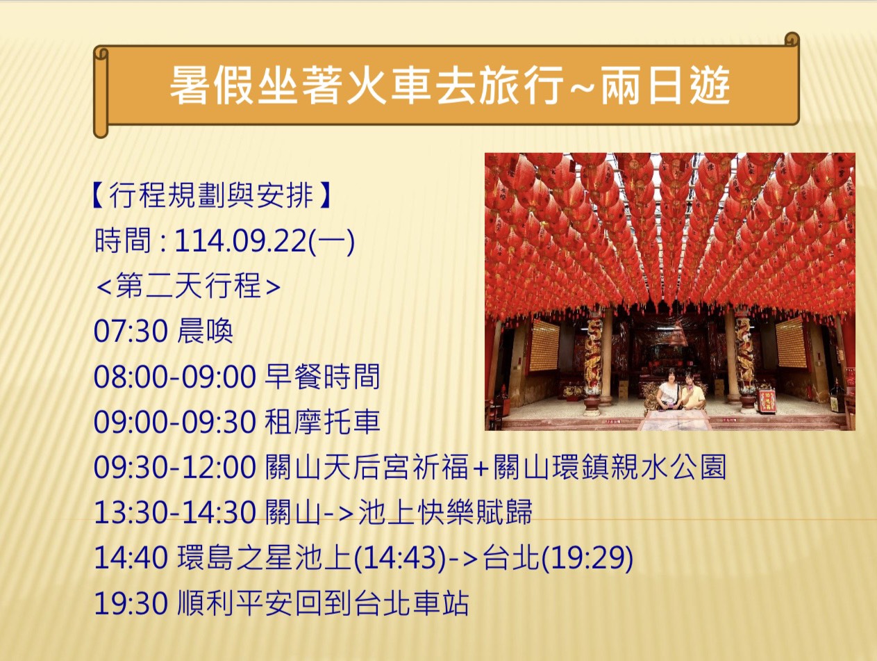 【景女OB家長聯誼會第三彈小旅行來囉~搭著環島之星去旅行】
