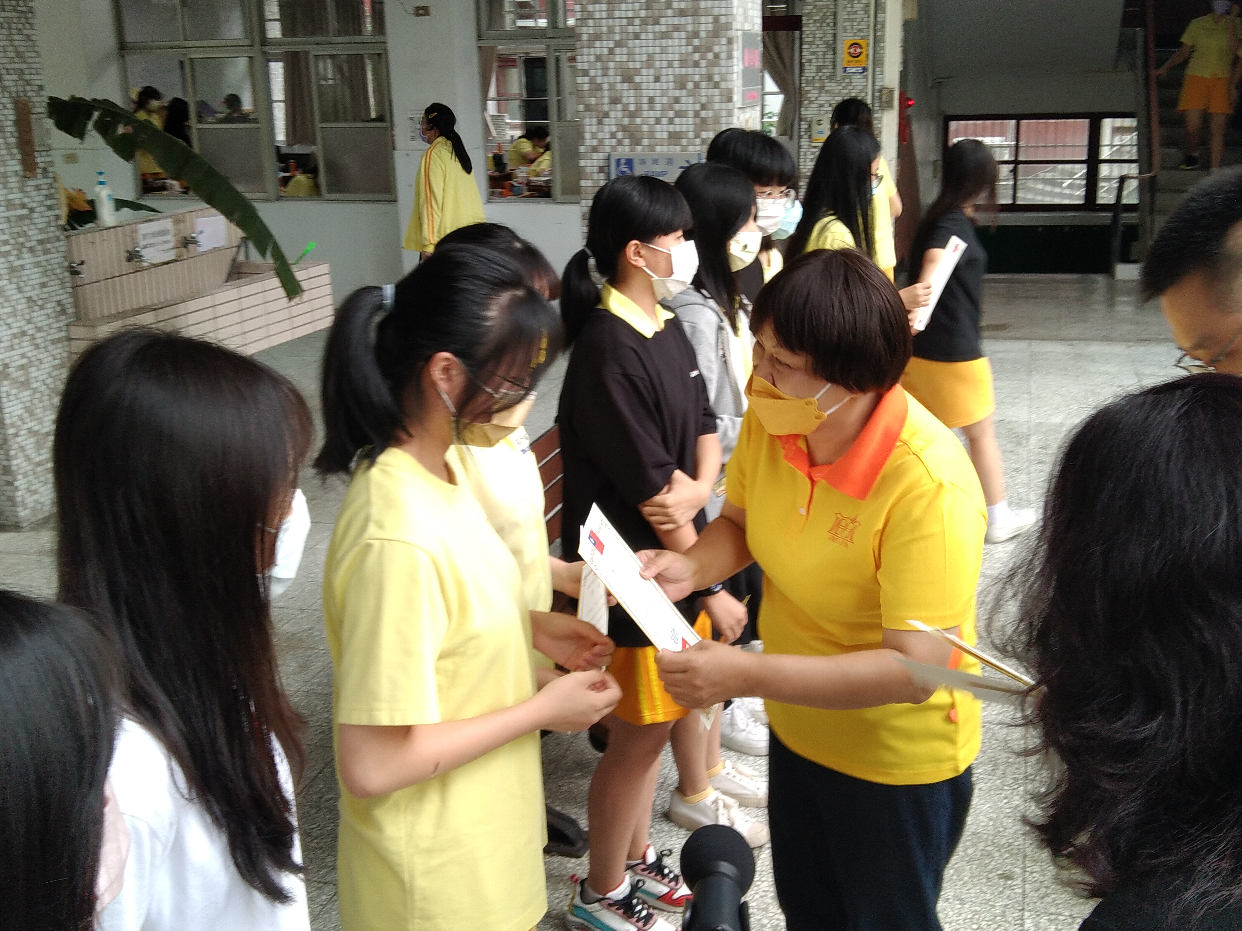 為鼓勵高三模擬考成績表現優異同學,教務處運用家長會編列支援預算,本日(10/6)中午於勵學樓一樓穿堂,由校長與本會許麗吉會長共同為每位同學頒發獎勵金,希望受獎同學繼續保持,並在不到100天的準備期,向學測目標持續邁進,加油!