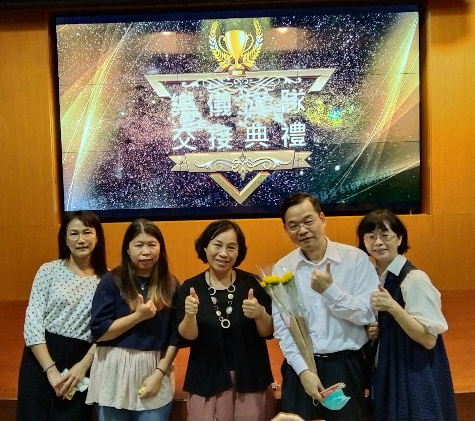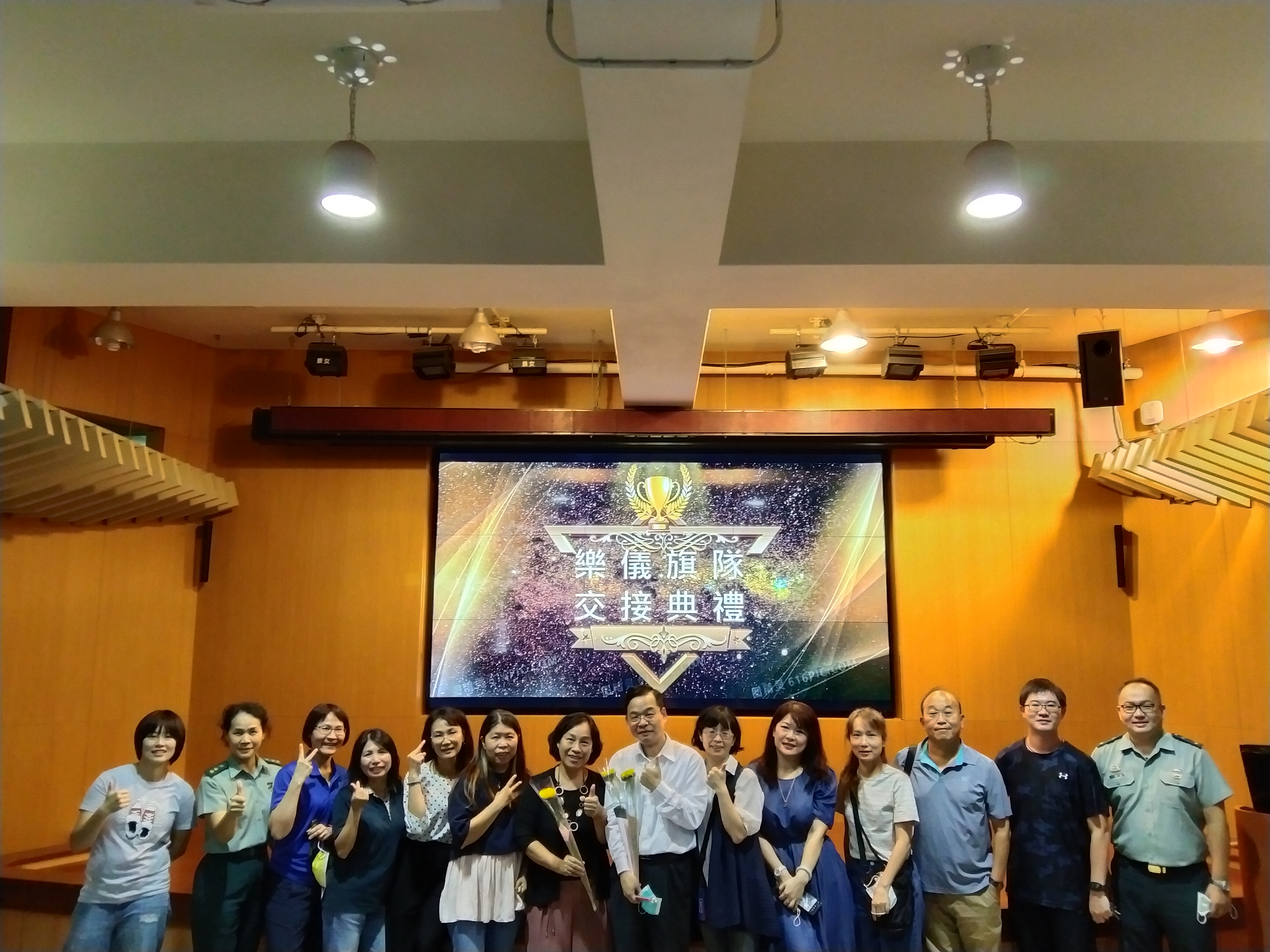 本校樂儀旗隊依傳統於二年級學姐升上三年級後,將任務交接下屆學妹,但因疫情原應於操場舉行交接儀式,移至敦品樓演藝廳簡化辦理,典禮邀請校長、各隊教練、後援會新舊任副會長、家長會張會長及校內各隊管理老師教官等人觀禮。儀式由校長頒發各隊隊員奬狀,並與隊員們合影,為交接儀式留下見證。感謝後援會家長的支持與付出,期勉學妹們繼續傳承光榮傳統為校爭光。